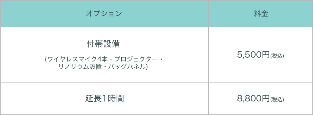 マイクの利用や延長をご希望の方は下記のオプションをご覧ください